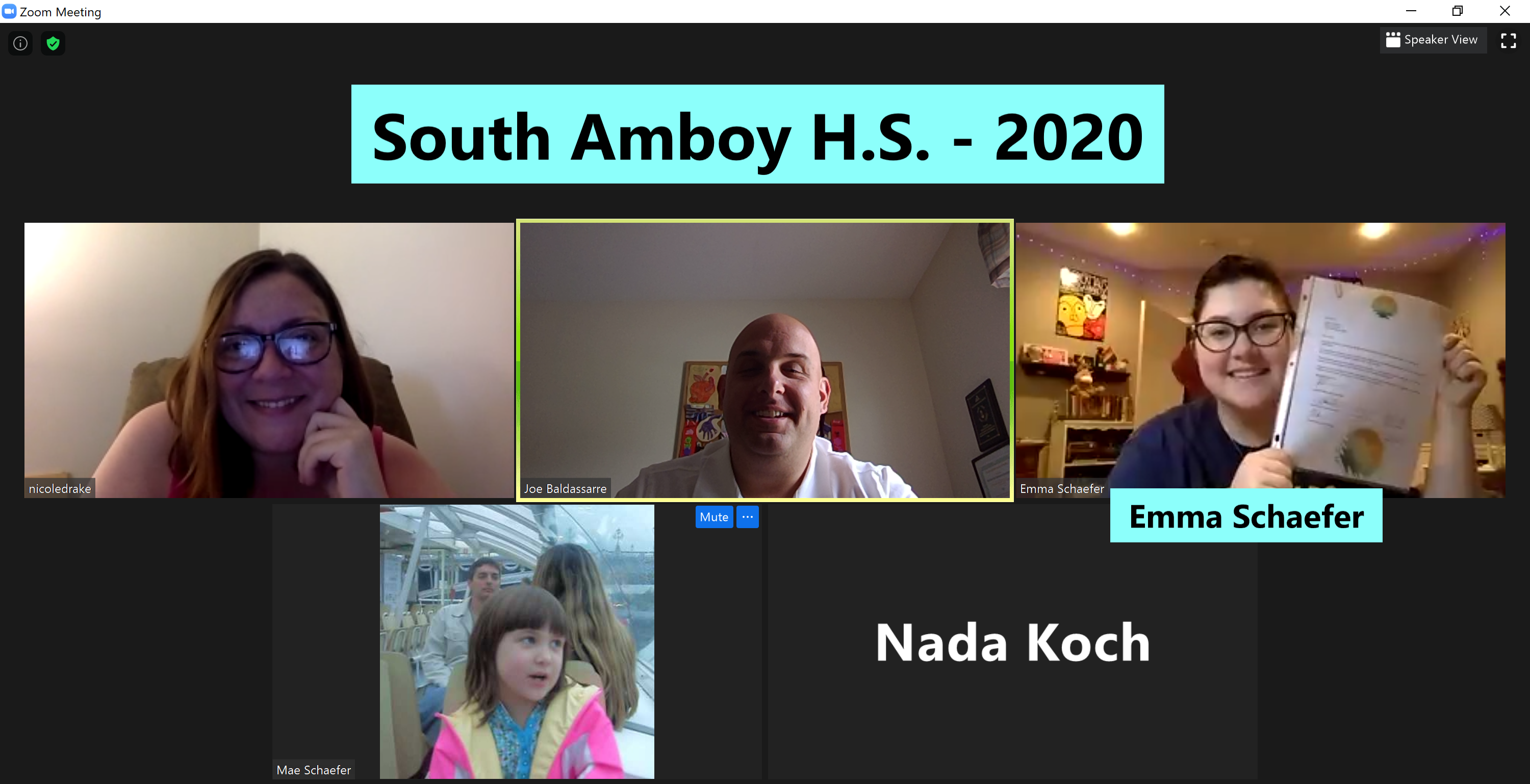 Congratulations to the next recipient of a JBF 2020 scholarship, Emma Schaefer of South Amboy H.S! With two board members, Nicole Viti Drake and Nada Aboulhosn Koch, along with her mother, Emma was awarded for her hard work, dedication, and passion to succeed. She actually received her award letter this morning in time for this afternoon's Zoom call. Emma will be attending Marymount Manhattan College in the fall for politics/human rights. She is someone is embodies all of the great qualities of Jennifer.