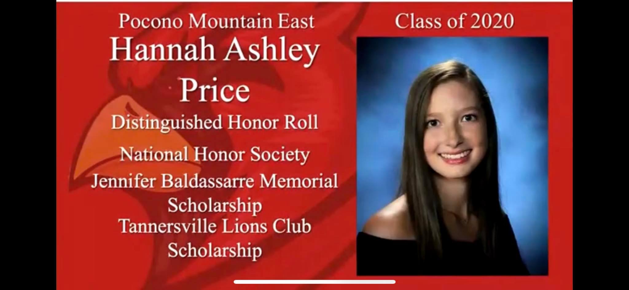 Congratulations to the last recipient of a JBF 2020 scholarship, Hannah Price of Pocono Mountain East H.S! Pocono Mountain was Jennifer's and my alma mater and it was 20 years ago this month that we both graduated together. I am very happy that our Foundation can give back to Pocono Mountain. Due to the COVID-19 graduation protocols for Pocono Mountain this year, Hannah received her JBF scholarship yesterday inside her graduation packet. JBF then received the email pictured below from Hannah's mother, Lisa. We are hoping that JBF can meet Hannah remotely soon to congratulate her over Zoom. Hannah will be attending Middle Tennessee State University for horse science/pre-vet. I love Lisa's email and I will let her words stand alone! Congratulations again Hannah!