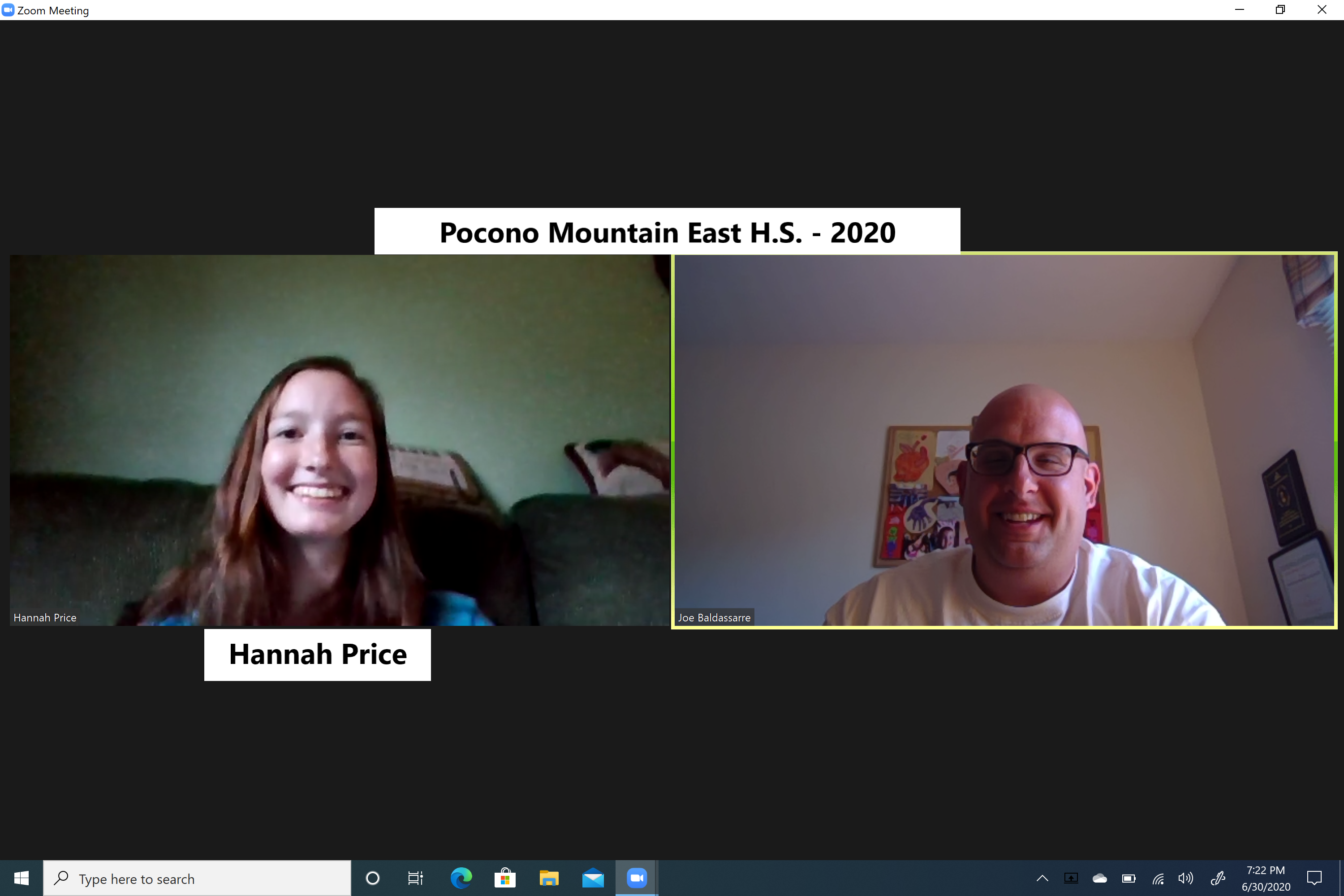 I got to meet Hannah tonight via Zoom, Pocono Mountain East's JBF scholarship winner! Such an amazing young woman! Congratulations again and best of luck at Middle Tennessee! #jbf2020scholarship9winners #jenniferbaldassarrefoundation #jbfacrossamerica