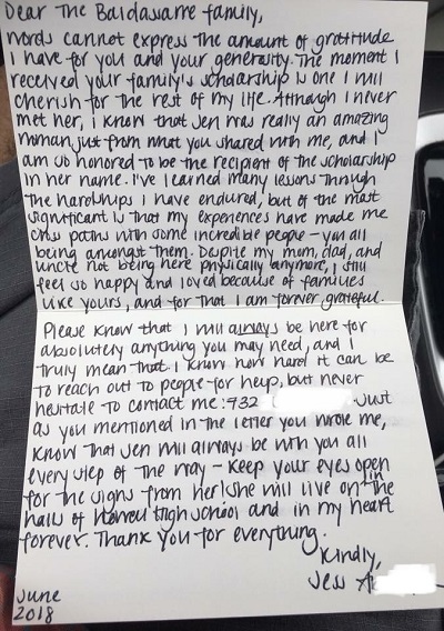 Letter from June 2017-2018 Howell High School Award Recipient.