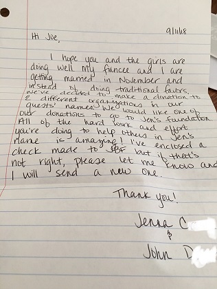 Letter from Jenna C, a former co-worker and friend of Jennifer's, and her fiance, John D.